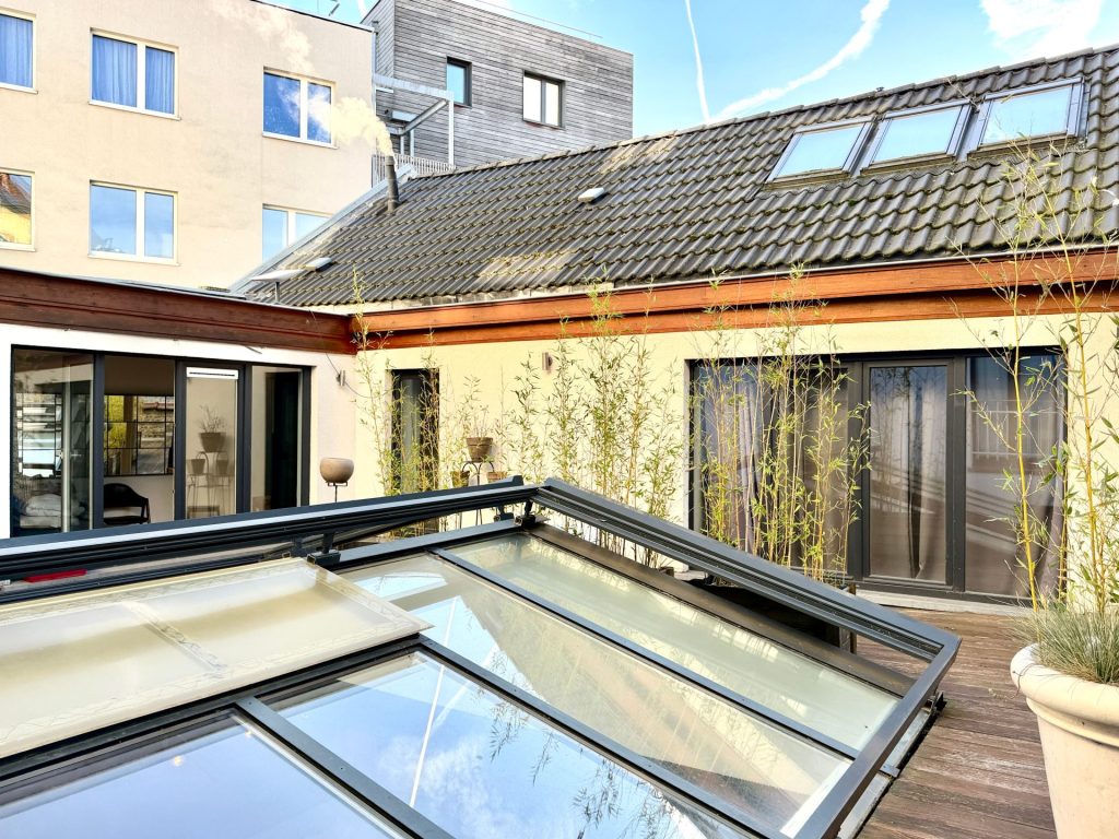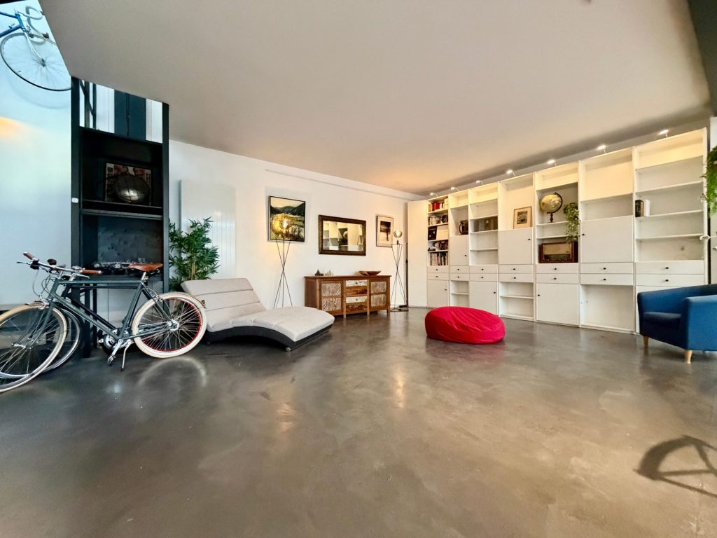 Le vaste séjour, sublimé par une superbe verrière ☀️, est baigné de lumière naturelle tout au long de la journée. L’atmosphère résolument new-yorkaise 🗽 est renforcée par :