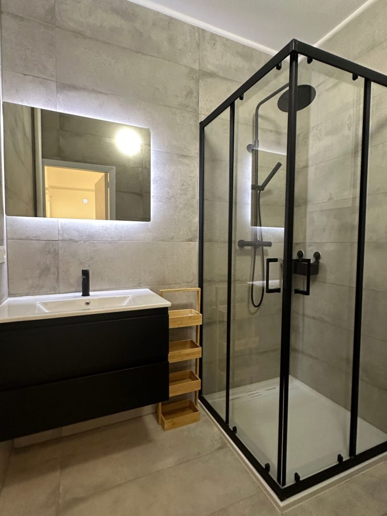 Salle de bains neuve avec emplacements pour machines