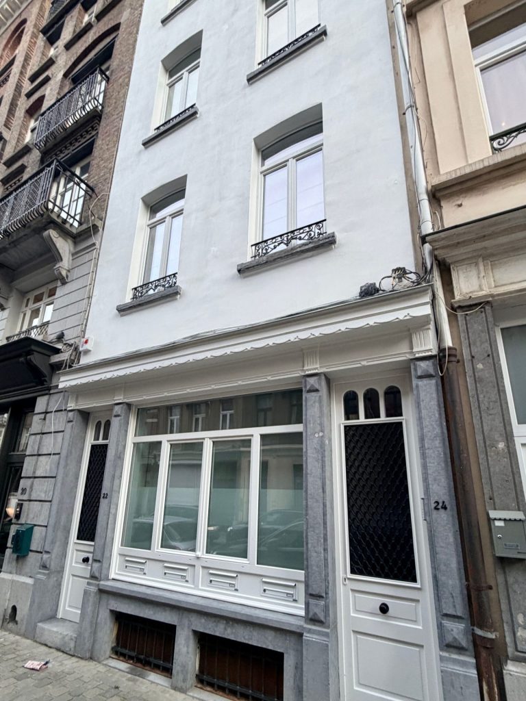 Ce duplex entièrement meublé et décoré avec goût, réparti sur le rez-de-chaussée et le premier étage, offre une combinaison rare de confort et de raffinement au cœur du dynamique quartier des Marolles à Bruxelles.